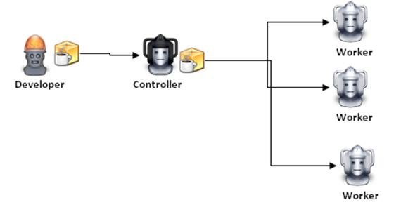 Como Controller, su tarea es ordenar la ejecución de los métodos del mismo servicio en el resto de los nodos de procesamiento (Workers) por medio de llamadas RPC.