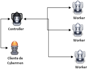 Es de destacar que el cliente de Cybermen no habla directamente con el clúster de procesamiento, si no que se comunica con el controller, siendo este (y conforme a su propia lógica) quien decide responder al cliente, o redirigir la llamada a uno o mas worker's. Ver el ejemplo descripto en la sección un caso práctico de esta guía.