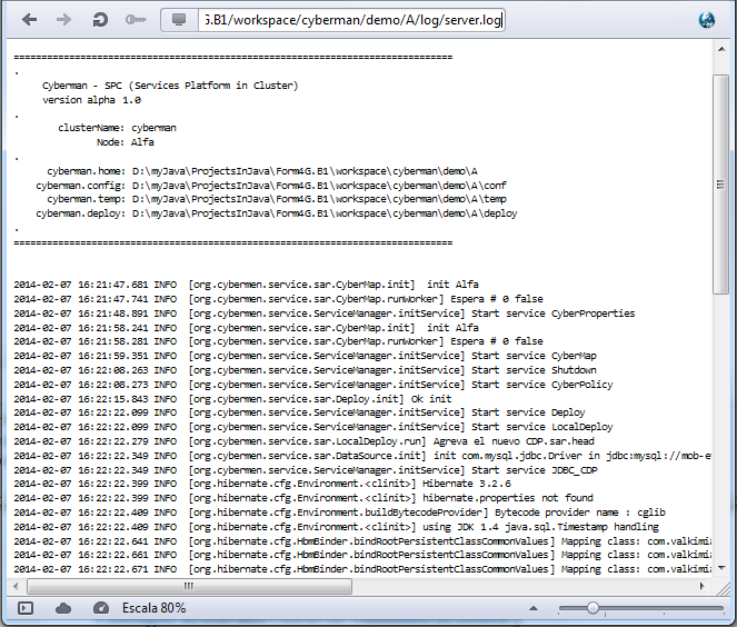 Nótese que este registro adopta la configuración de rotación del archivo de LOG, especificada como parámetro de configuración del nodo (el parámetro "cybermen.fileHandler.pattern" del archivo "cyberconfig.xml" en el directorio "conf").