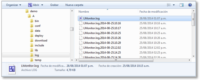 Dicha información es almacenada en el directorio "log" en el archivo "LMonitor.log"